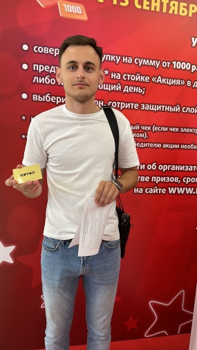 - предъявите чек на стойке «Акция» (1 этаж, 2 очередь) в день совершения покупки или на следующий день;